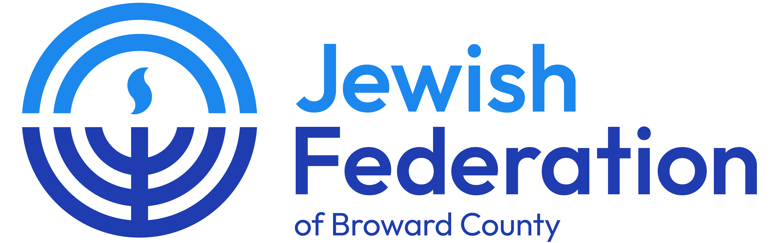 Logo for the Jewish Federation of Broward County featuring a stylized menorah and a modern blue font.
